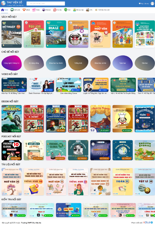 Triển khai hệ thống lưu trữ đám mây: Xây dựng một nền tảng thư viện số dựa trên công nghệ đám mây cho phép quản lý và truy cập các tài liệu số. Đây là nơi học sinh và giáo viên có thể tìm kiếm, đọc, xem, nghe, luyện tập và tải tài liệu.